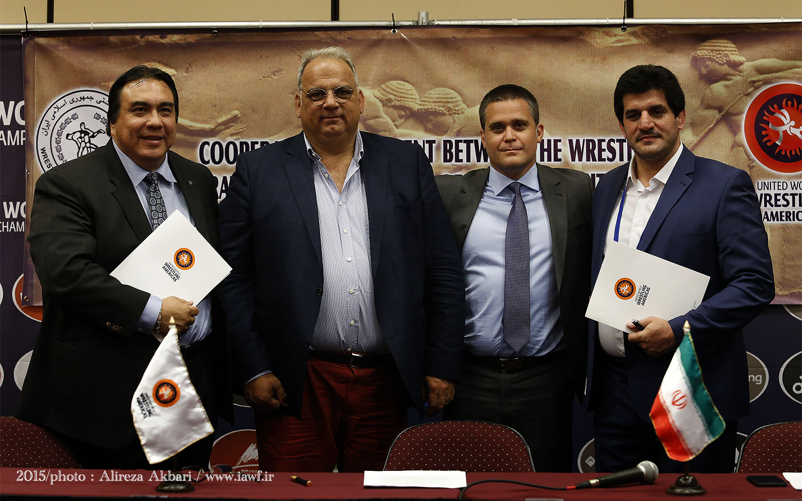 CORSIER-SUR-VEVEY (September 23) – During the 2015 Wrestling World Championships in Las Vegas members of United World Wrestling – Americas signed a development agreement with the Iranian Wrestling Federation to help the continental confederation further progress the sport of wrestling in Central and South America.