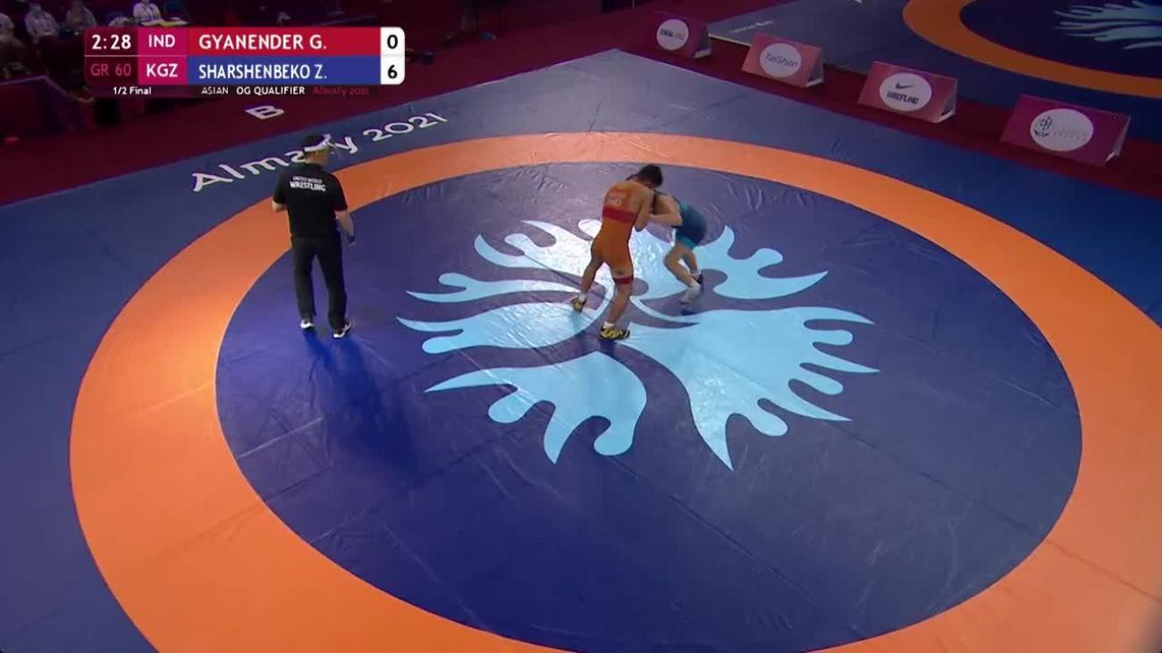 Zholaman SHARSHENBEKOV (KGZ) gained Olympic spot by winning Asian qualifying tournament in Almaty, beating Gyanender GYANENDER (IND) 6-1 in decisive semifinal and fellow qualifier Sailike WALIHAN (CHN) 4-3 in final....Prepared for Tokyo with runner-up finish to European qualifier Kerim KAMAL (TUR) at Vehbi Emre Tournament in June in Istanbul...World silver medalist at 55kg in 2018, moved up to Olympic weight class the next year. In first outing at 60kg, placed 3rd at Dan Kolov-Nikola Petrov Tournament. Lost to Walihan 9-4 in semifinals....Won 2020 Individual World Cup with victory in final over 2018 world champion Stepan MARYANYAN (RUS), rallying from 0-4 deficit to win 4-4 with late gut wrench...Silver medalist to world champion Kenichiro FUMITA (JPN) at 2020 Asian Championships...World U-23 silver medalist and Asian U-23 champion in 2019... Was world junior silver medalist in 2017 (lost to Kamal in 55kg final) and 2016 world cadet bronze medalist.