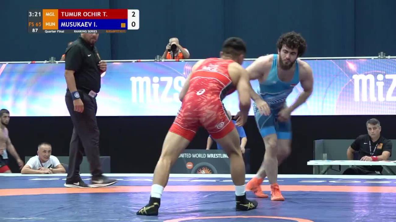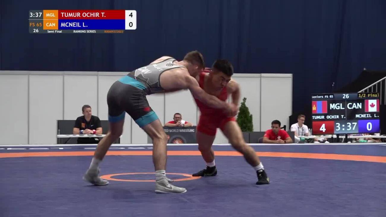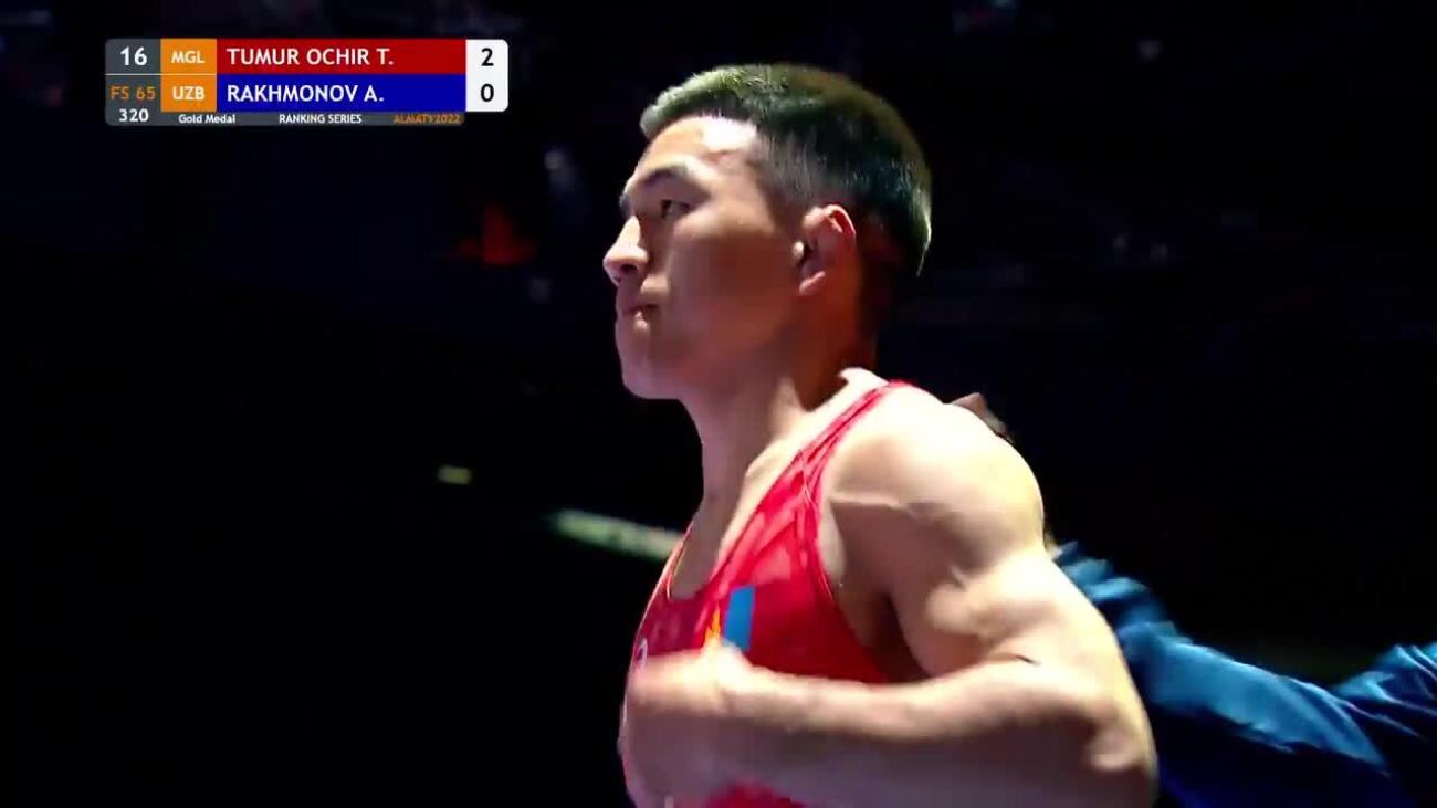 Tulga TUMUR-OCHIR (MGL) placed 5th at 2019 World Championships to earn place in 1st Olympics. Lost 6-2 to Daulet NIYAZBEKOV (KAZ) in quarterfinals, beat Alexander SEMISOROW (GER) 8-0 in repechage, lost 8-7 to Bajrang PUNIA (IND) in bronze-medal match after leading 6-0....This year, silver medalist at Matteo Pellicone tournament in March behind Punia, losing 2-2 on takedown in final 30 seconds....2019 Asian U-23 champion, winning all three matches by fall or technical fall without giving up a point. In final, pancaked Amir Mohammad YAZDANI (IRI) twice before winning by fall....In 2018, 7th at World Championships after losing to Punia 5-3 in quarterfinals, 9th at World U-23 after 1st-round loss to Rio 2016 silver medalist Rei HIGUCHI (JPN). Also, champion of Takhti Cup, 3rd at Spain Grand Prix and 2nd at Dmitri Korkin Tournament (beat Higuchi by technical fall in quarterfinals)....2015 Asian cadet champion.
