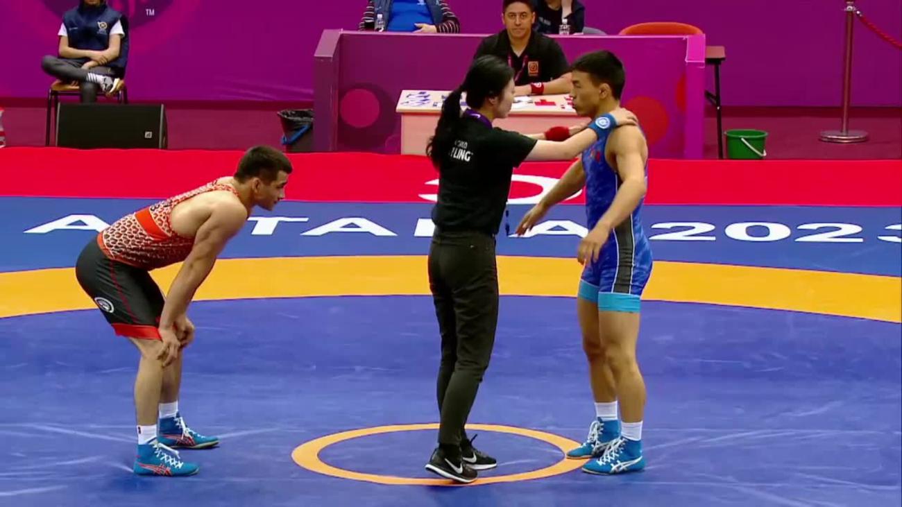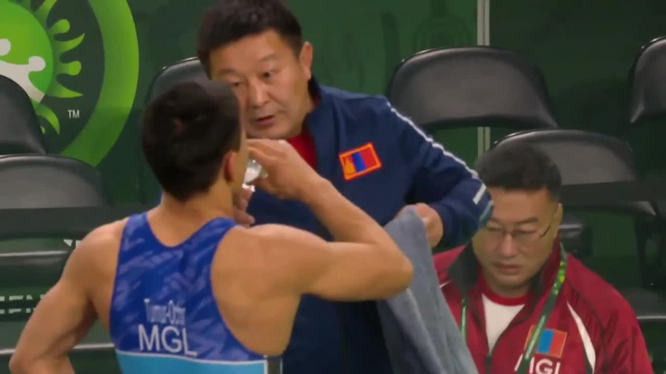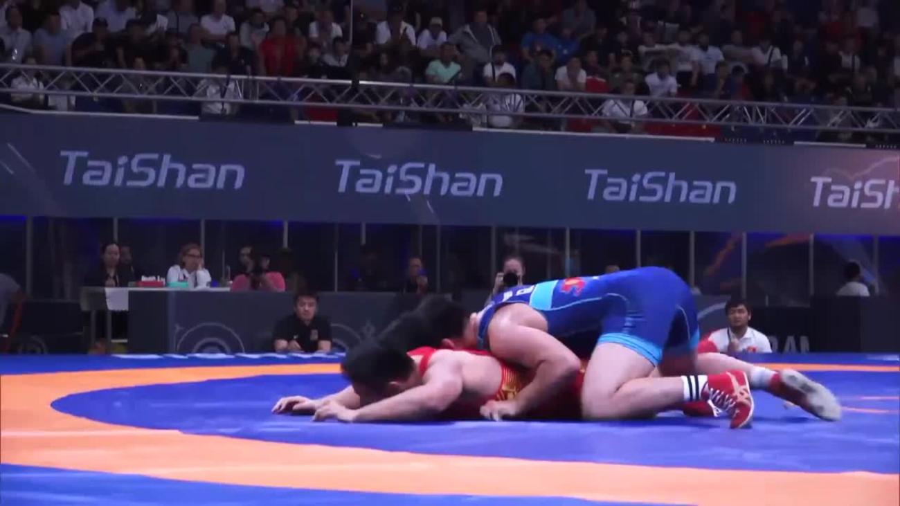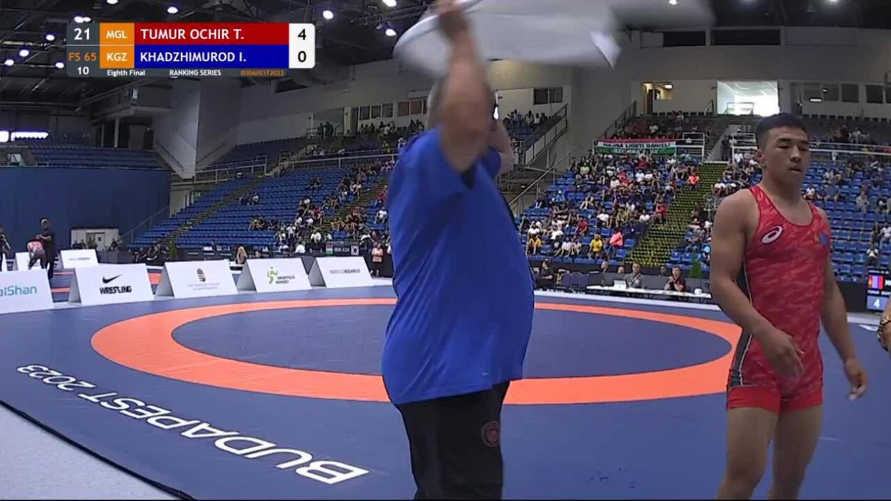 Tulga TUMUR-OCHIR (MGL) placed 5th at 2019 World Championships to earn place in 1st Olympics. Lost 6-2 to Daulet NIYAZBEKOV (KAZ) in quarterfinals, beat Alexander SEMISOROW (GER) 8-0 in repechage, lost 8-7 to Bajrang PUNIA (IND) in bronze-medal match after leading 6-0....This year, silver medalist at Matteo Pellicone tournament in March behind Punia, losing 2-2 on takedown in final 30 seconds....2019 Asian U-23 champion, winning all three matches by fall or technical fall without giving up a point. In final, pancaked Amir Mohammad YAZDANI (IRI) twice before winning by fall....In 2018, 7th at World Championships after losing to Punia 5-3 in quarterfinals, 9th at World U-23 after 1st-round loss to Rio 2016 silver medalist Rei HIGUCHI (JPN). Also, champion of Takhti Cup, 3rd at Spain Grand Prix and 2nd at Dmitri Korkin Tournament (beat Higuchi by technical fall in quarterfinals)....2015 Asian cadet champion.