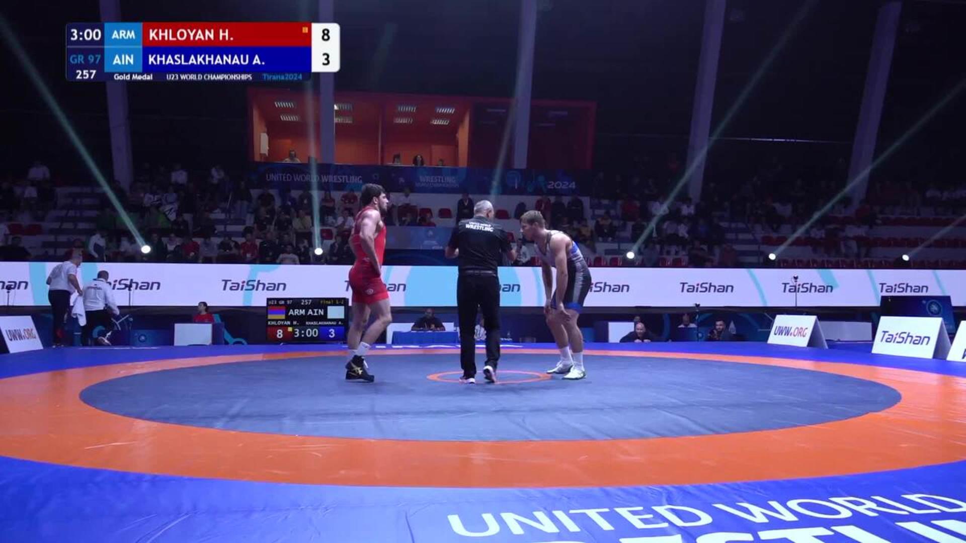 Hayk KHLOYAN (ARM) vs. Abubakar KHASLAKHANAU (AIN) | 2024 U23 World Championships | Gold Medal | GR 97Kg