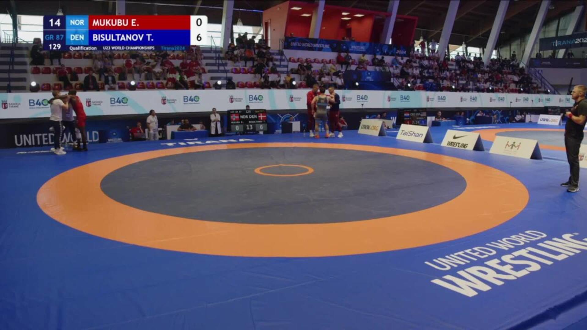 Exauce MUKUBU (NOR) vs. Turpal Ali Alvievich BISULTANOV (DEN) | 2024 U23 World Championships | Qualification | GR 87Kg
